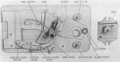 Lock no. 6 was used inside the cash compartment - the front plate of the cash compartment fitted into this lock. This lock was positioned such that the postman needed to insert a key from underneath into a hole in the cash compartment. | |||