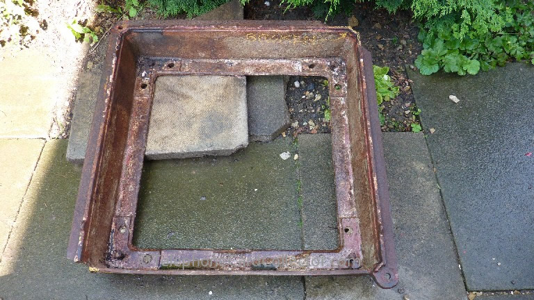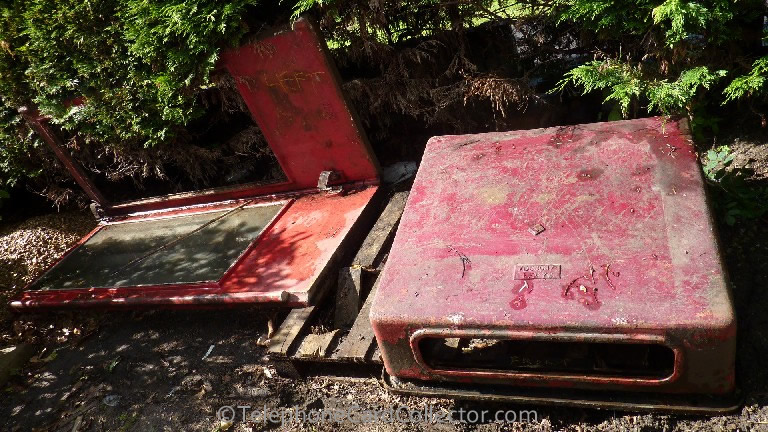 | This kiosk was originally recovered from its street location because the bottom front right hinge corner had fractured. Each time the door was opened the lower left side of the kiosk side panel also began to move alarmingly away from the base. |