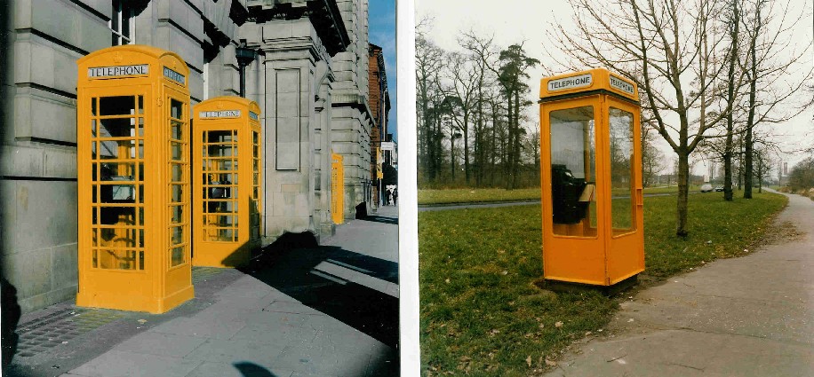 Air Payphones: The 'Oakham' open air housing manufactured at Gilwood Fabrications, Skelmersdale. For locations where kiosks were constantly being vandalised. Photographs copyright Chris Bent Far right, temporary outdoor payphones for the Pope's visit to Liverpool |