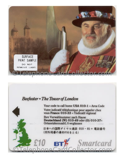 Pictured below - TTCF007 - Beefeater - £10 - matt finish - sticker - the front and reverse of the card are shown.